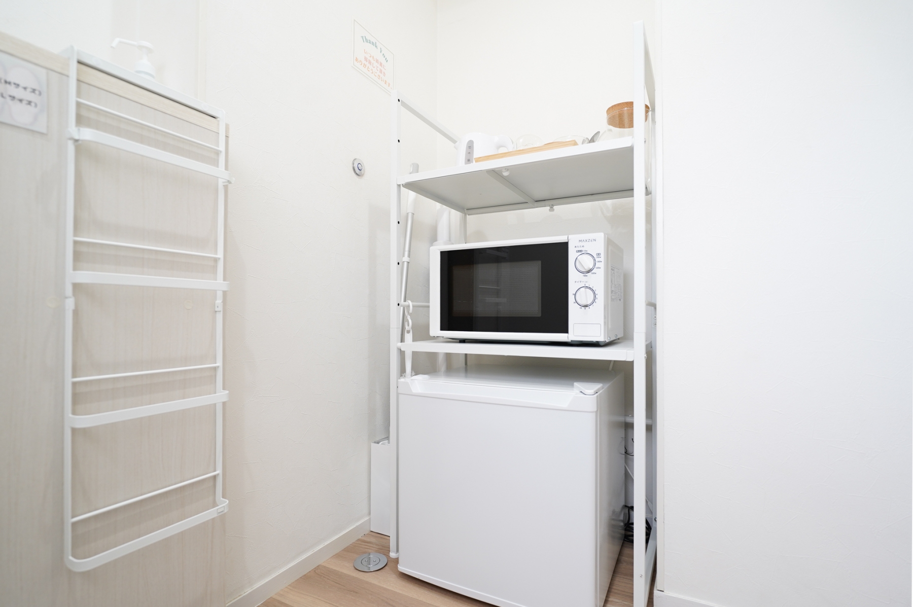 空気清浄機兼加湿器 / 天井調光ライト / 置き型調光ライト / テーブル / 椅子 / 折りたたみ椅子(2脚)/ 全身鏡 / 女優ミラー / ドライヤー / ヒーター/ 電子レンジ / 湯沸かしポット / 冷蔵庫 / 掃除機 / クイックルワイパー