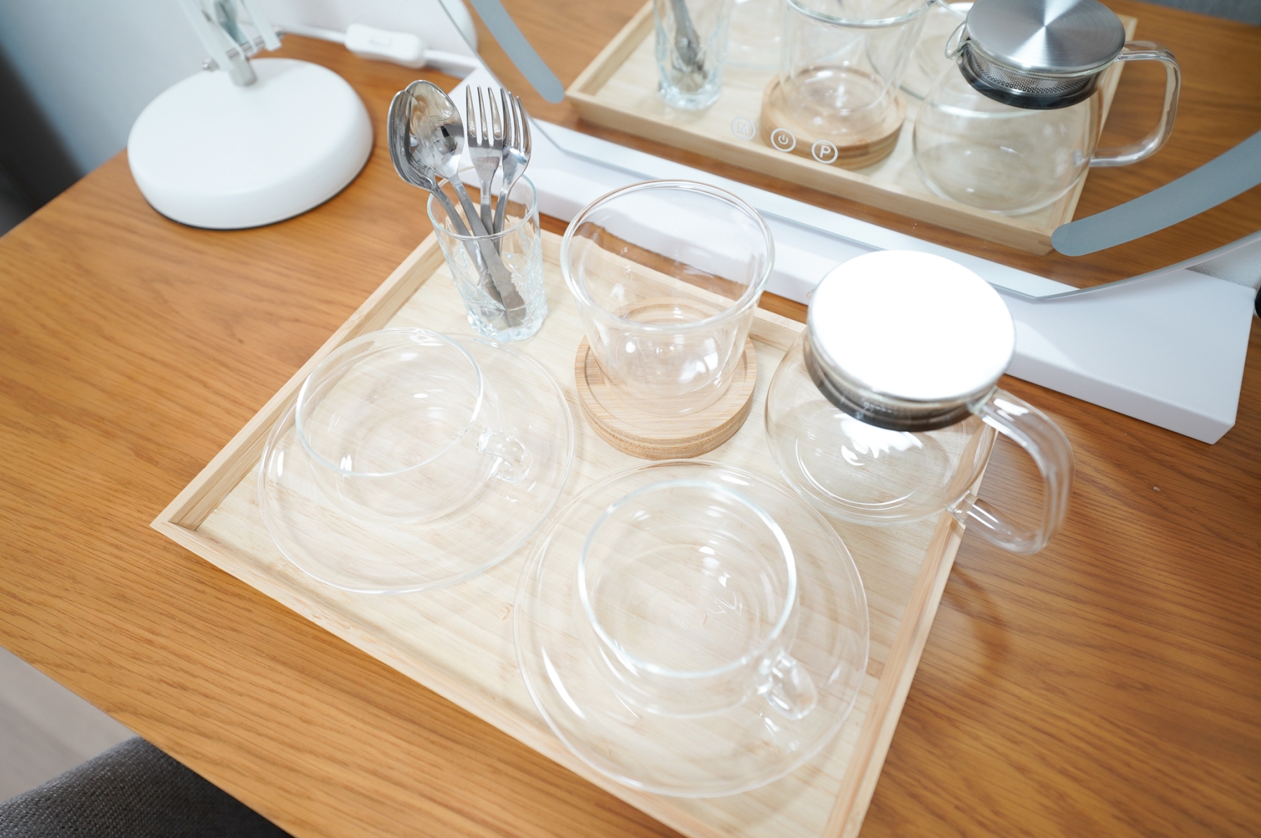 ハンガーラック(ハンガー1個) / スリッパ(4セット) / 荷物カゴ / スマホ充電器(各種)/ Bluetoothスピーカー / ヒーリング音楽プレーヤー(自然音) / ヨガマット(2枚) / ハーフポール(2本) / ストレッチポール