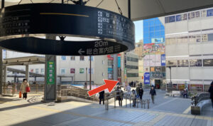①JR改札を出て左手の南口から外に出ます。