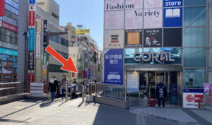 ②正面左手に向かって進みます。CORALという建物横のエスカレーターを下ります。