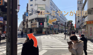 ③100mほど真っ直ぐ進んで、左手に「バーミヤン」が見える交差点になるので、そこを左に曲がります。