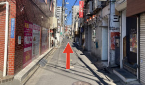 ⑤真っ直ぐ進んで、「鳥焼肉」のお店が見えてくるので、そこを左に曲がります。